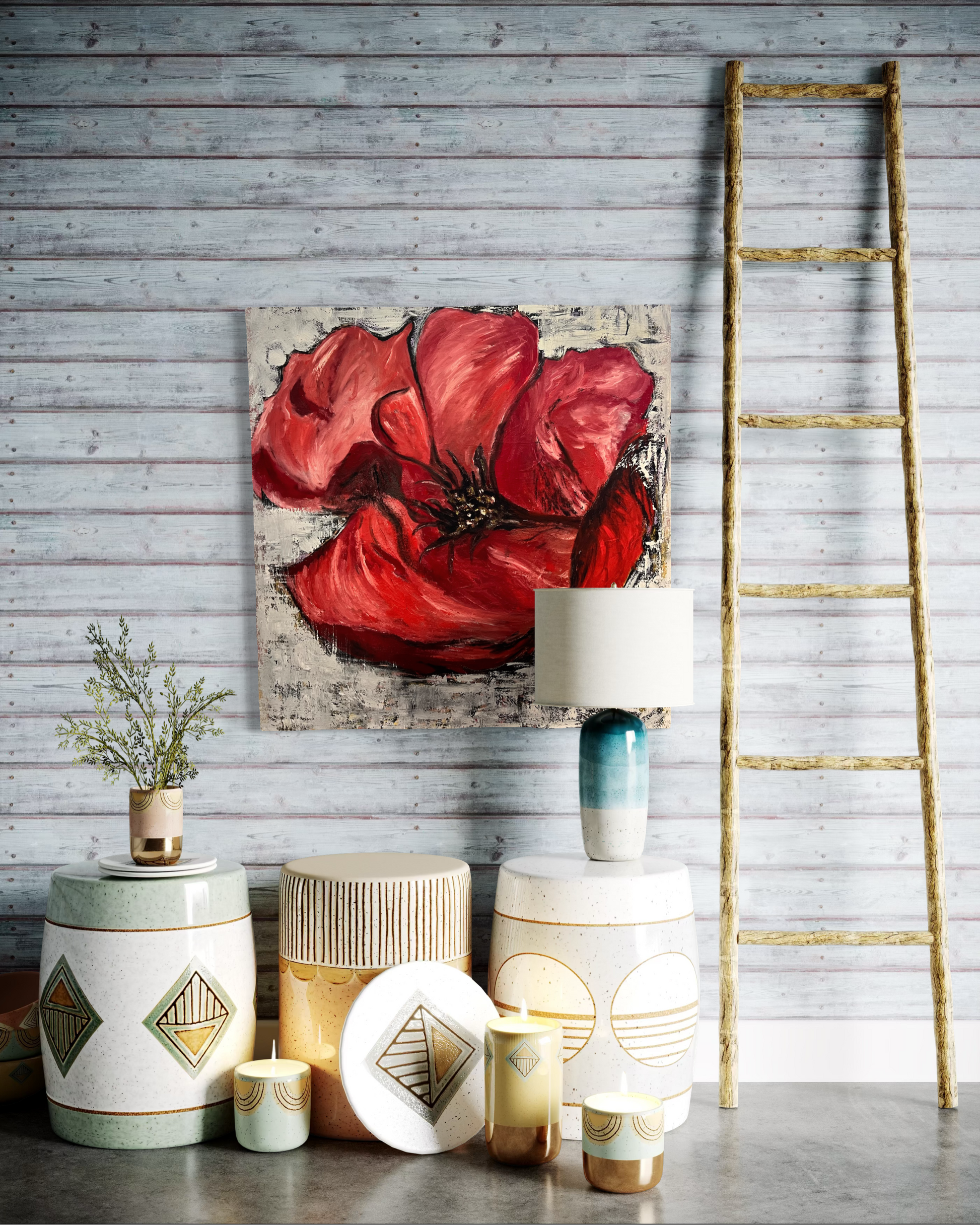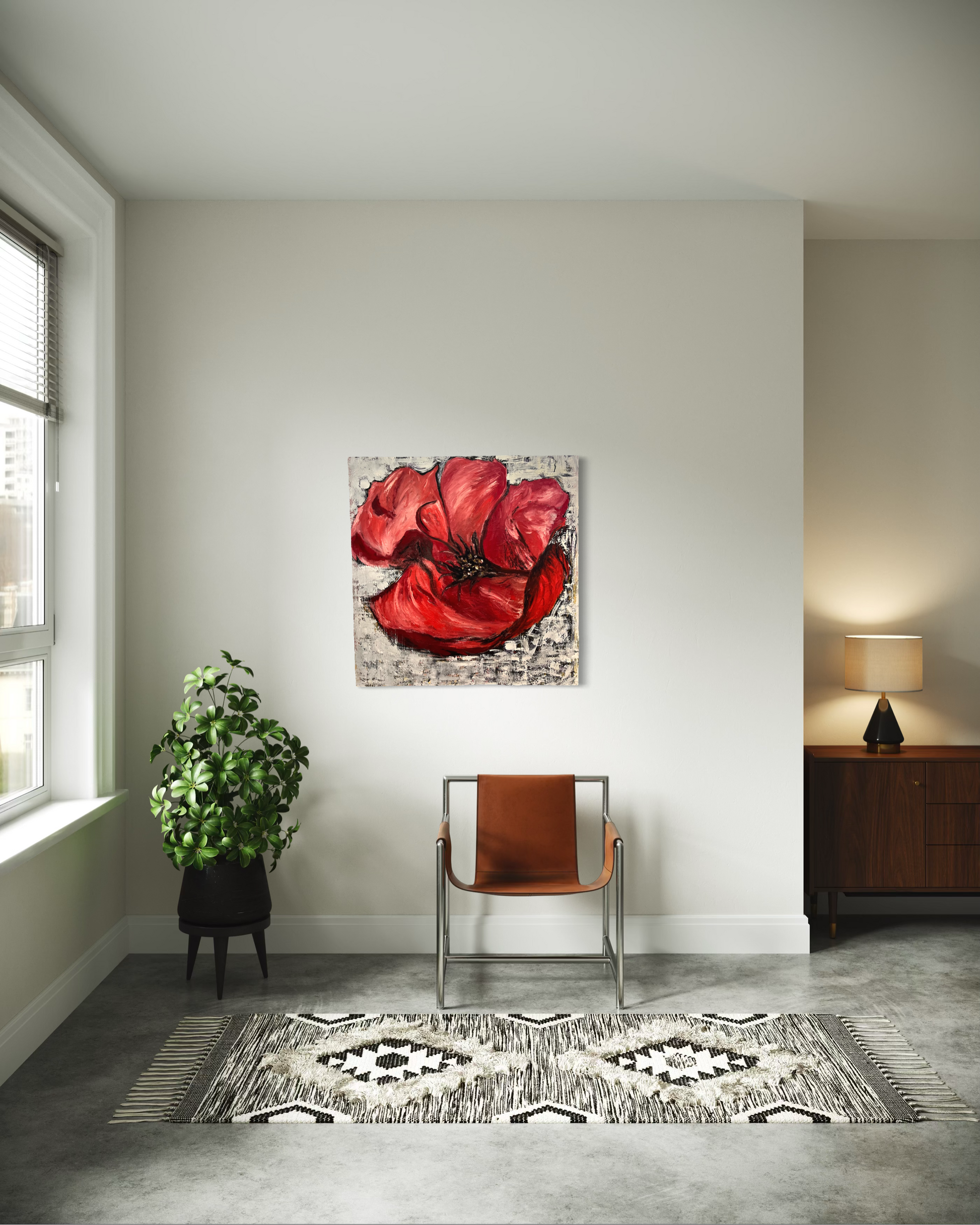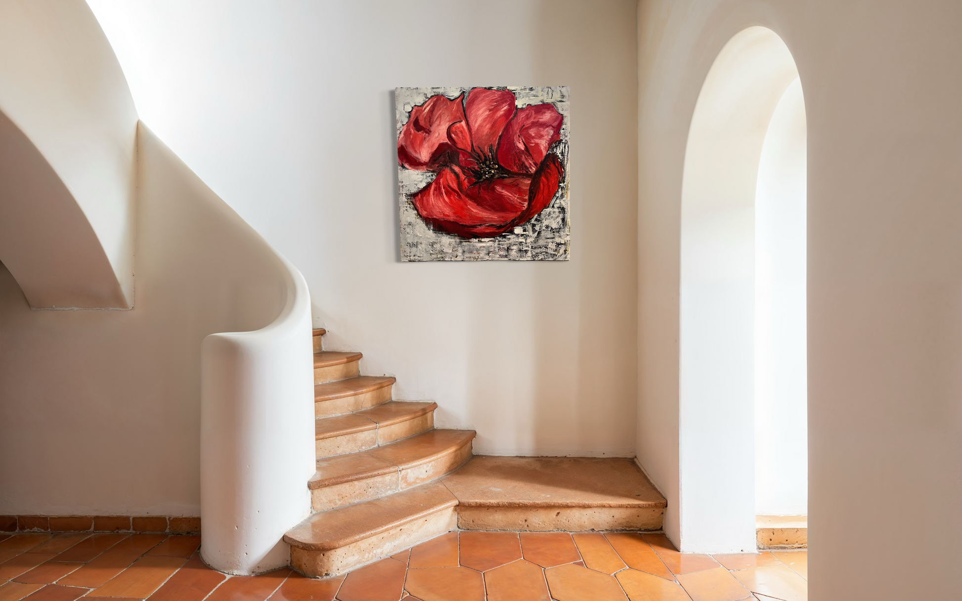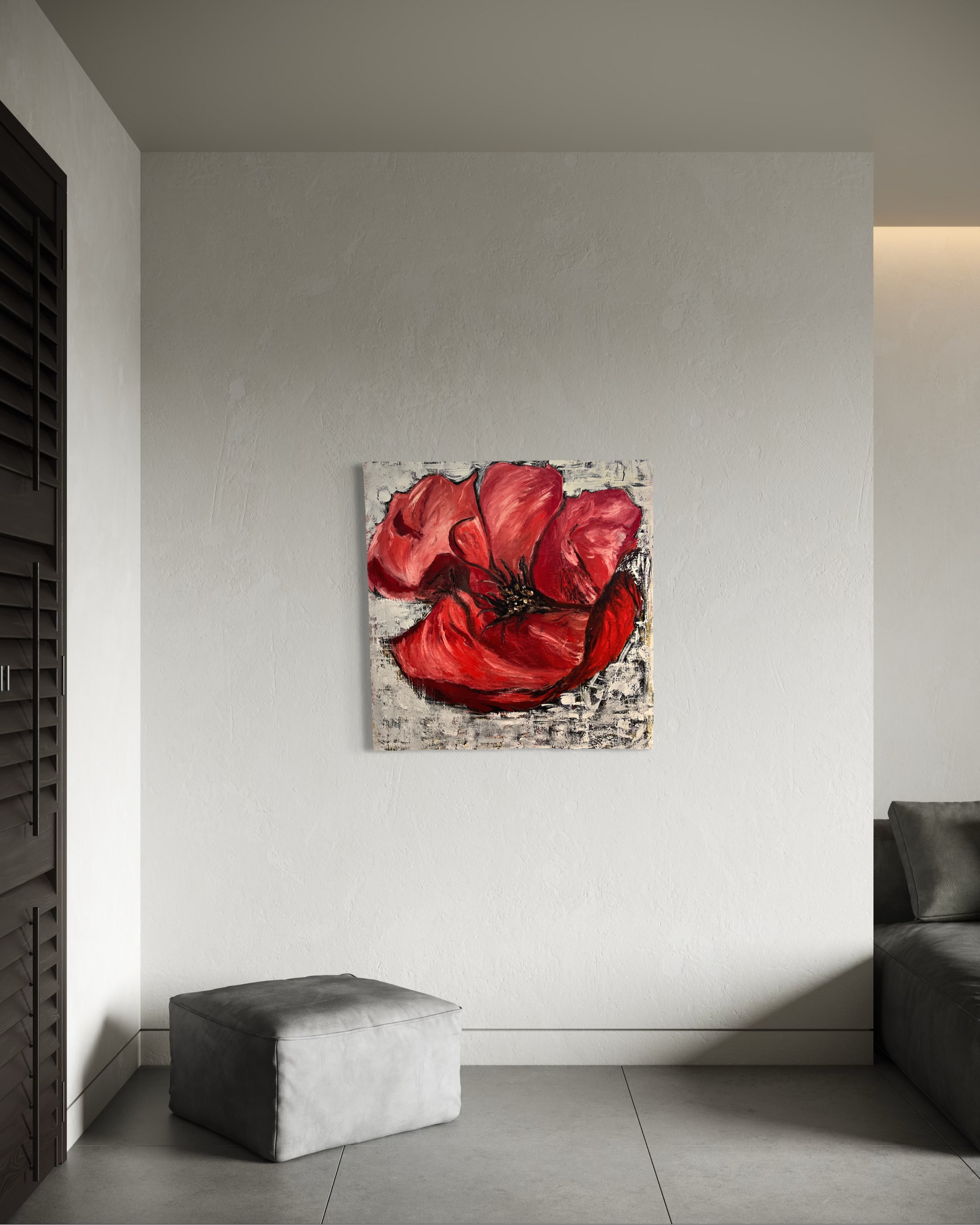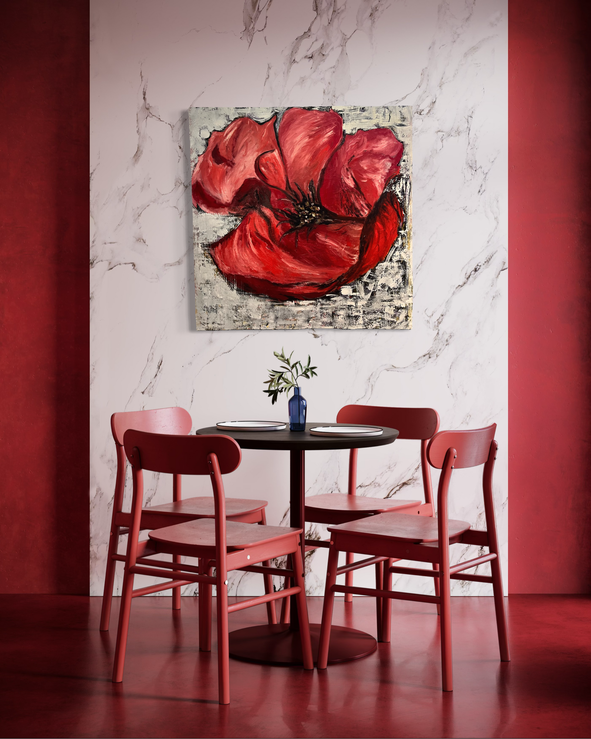 This vibrant painting capture the rich, deep red of a blossoming flower, radiating elegance and beauty.