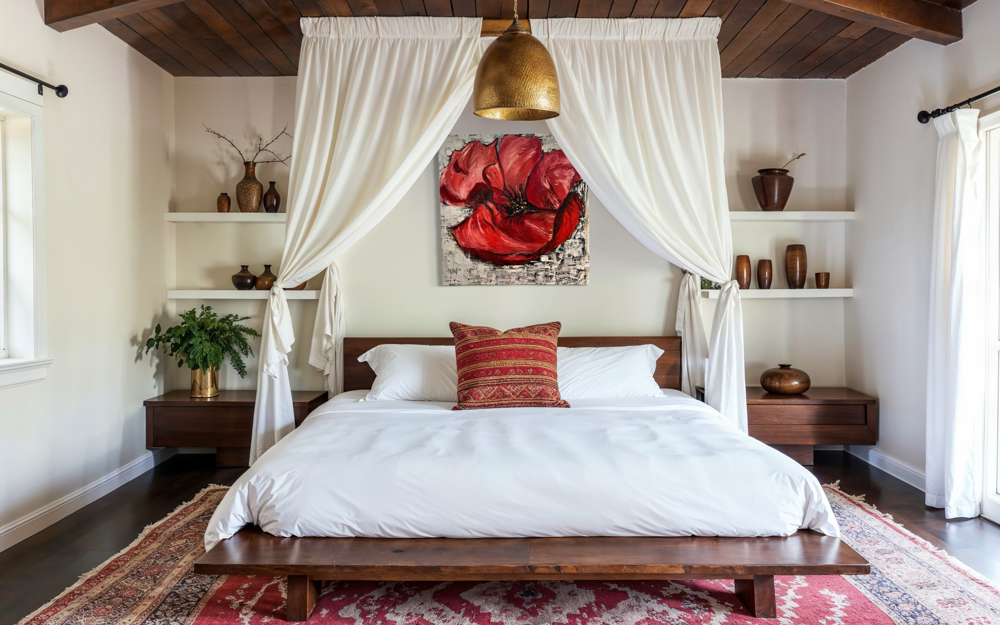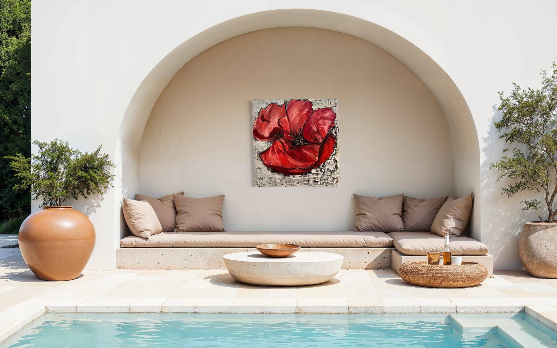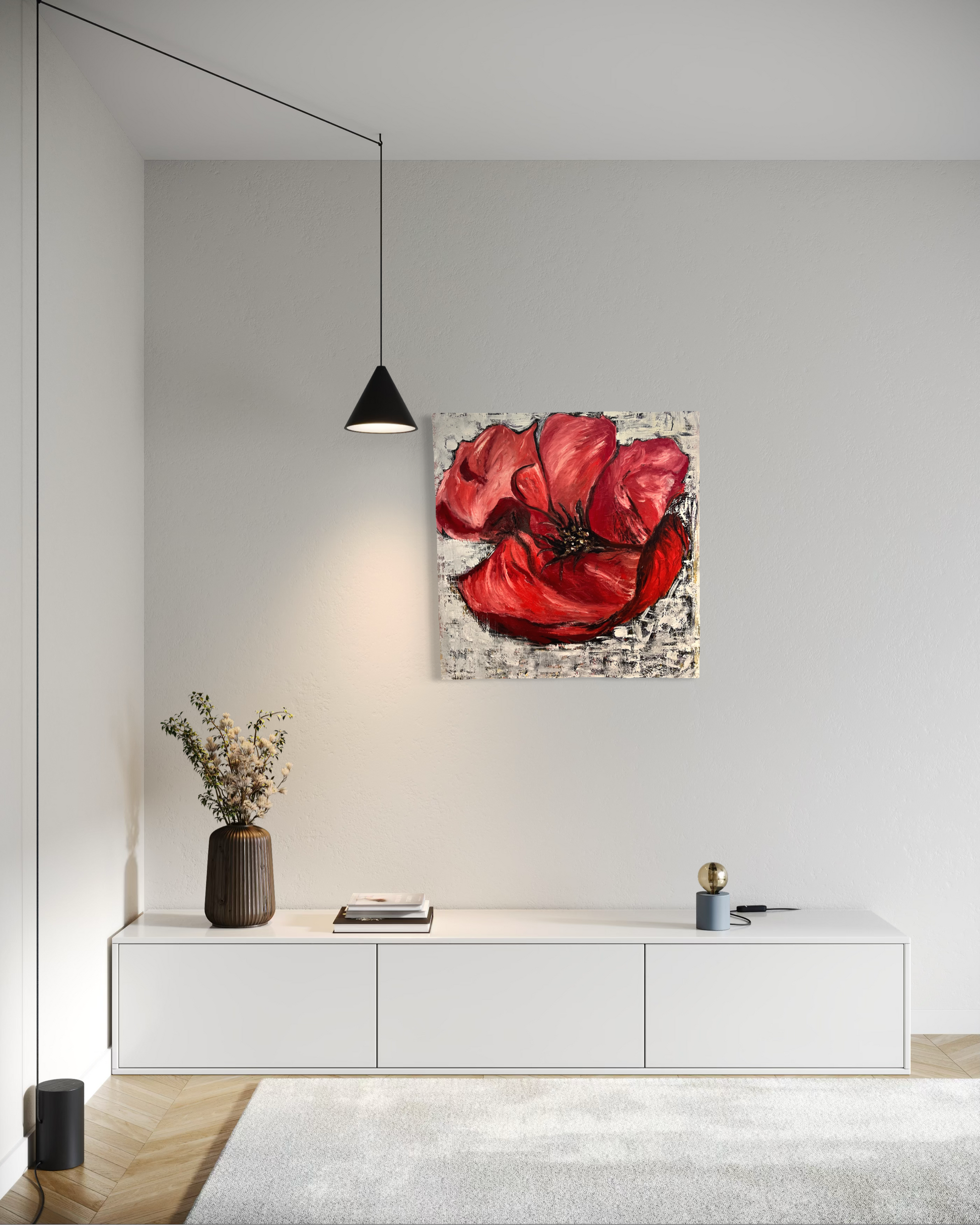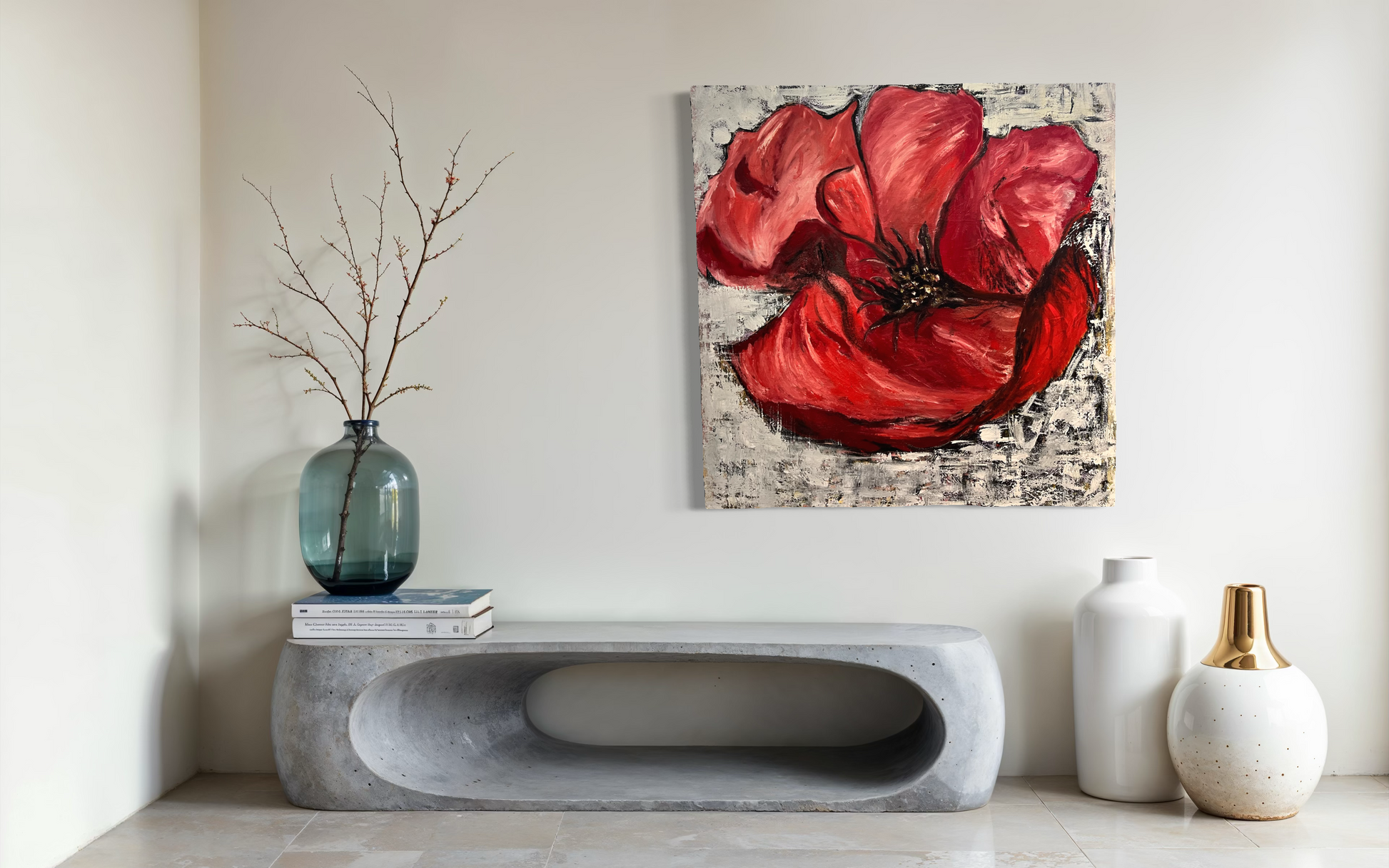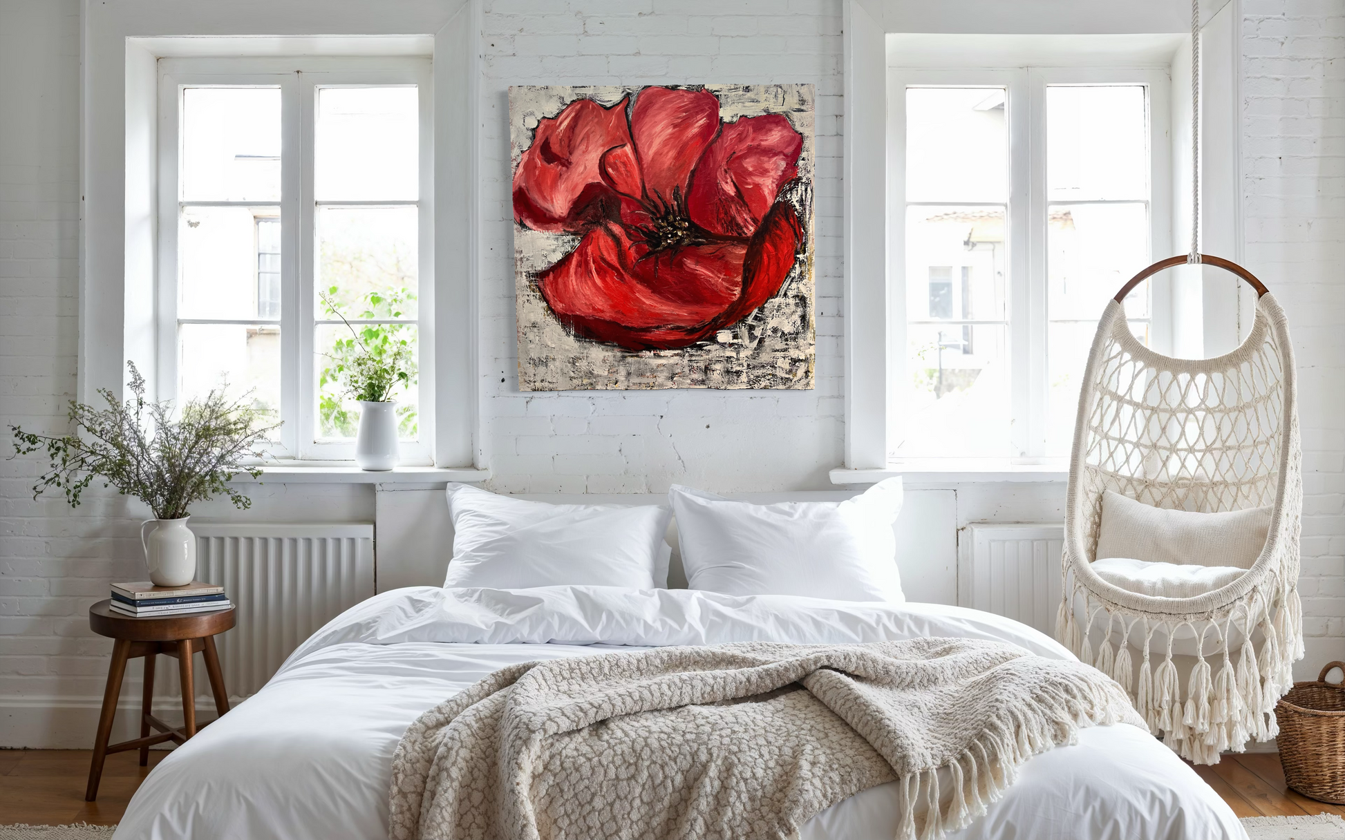 This vibrant painting capture the rich, deep red of a blossoming flower, radiating elegance and beauty.