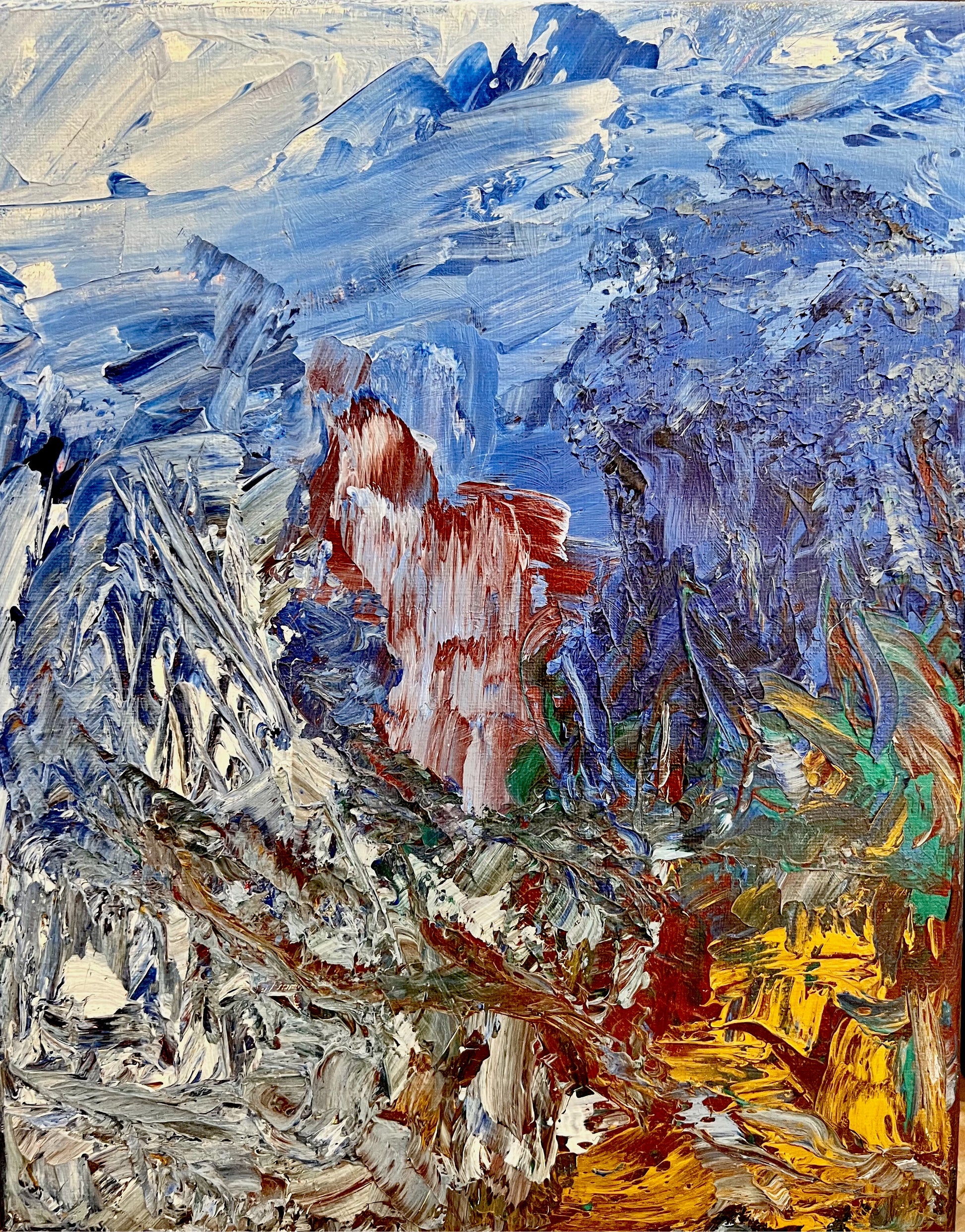This painting is an abstract landscape- it serves as a daily reminder how strong you are. No matter how hard life gets if you keep just putting one foot in front of the other, you will climb that mountain. You can overcome any struggles and even enjoy the journey- not only the view from the top.