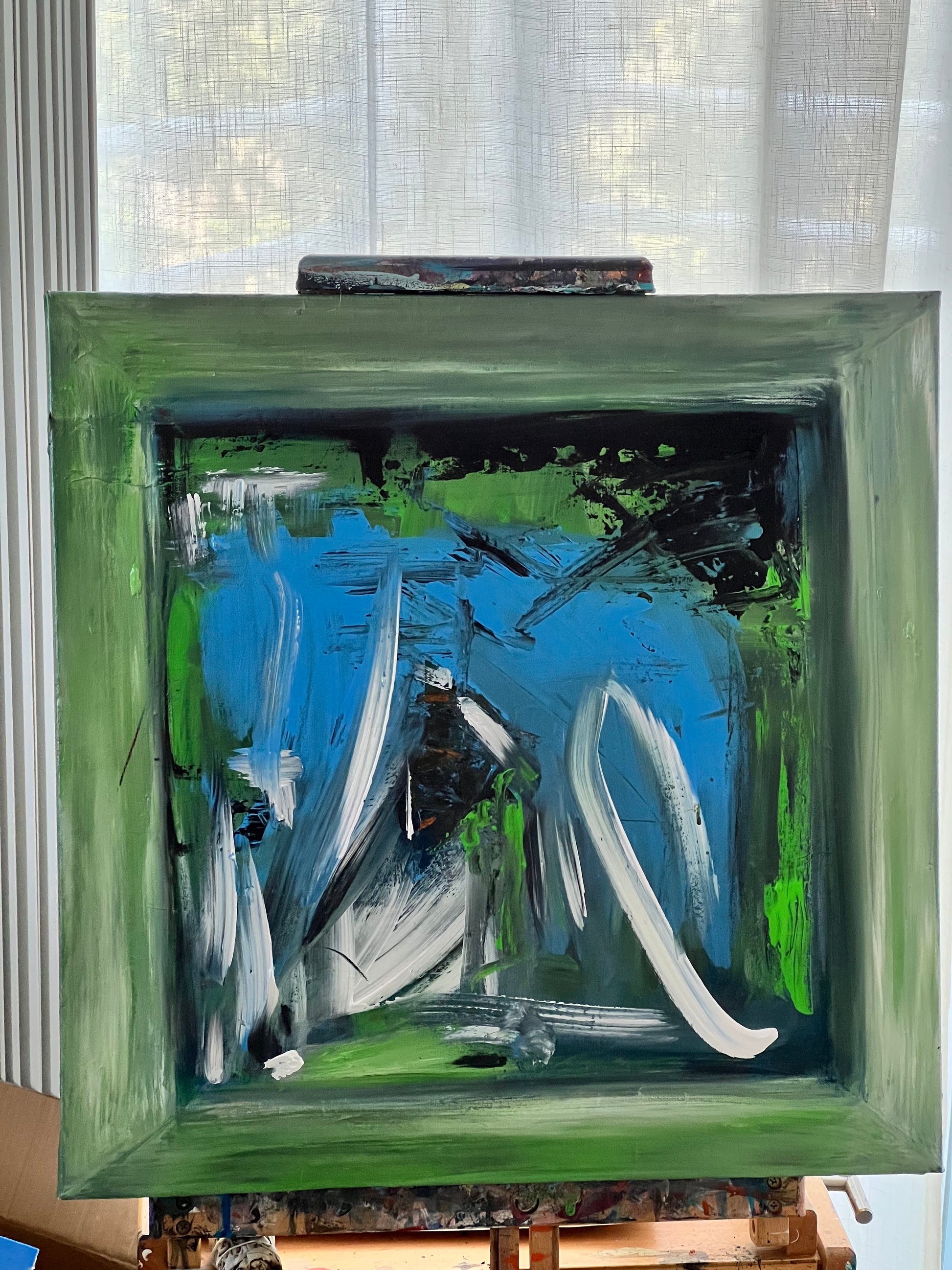 Artist painted a frame around the picture to emphasize energetic charge that appears to break through all constraints.