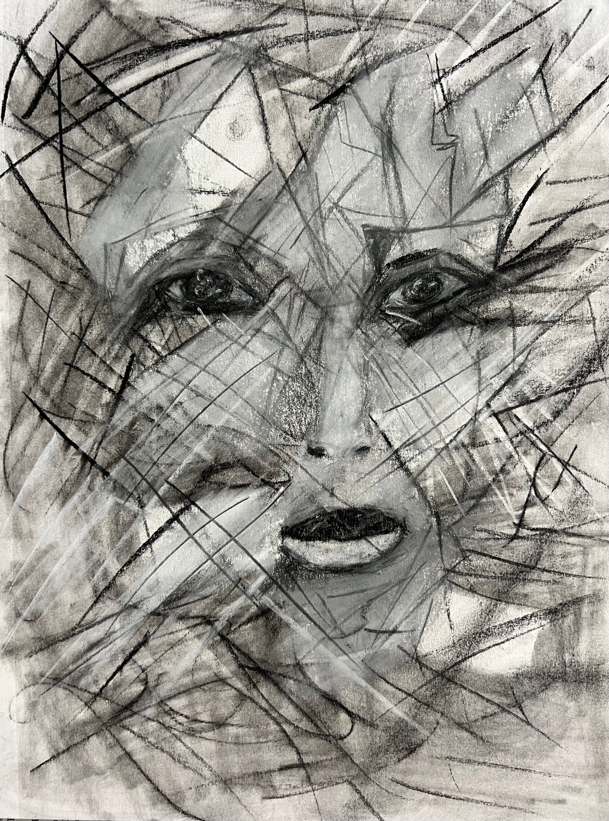 “Rising”- Charcoal and pastel original abstract expression -drawing. One of a kind.